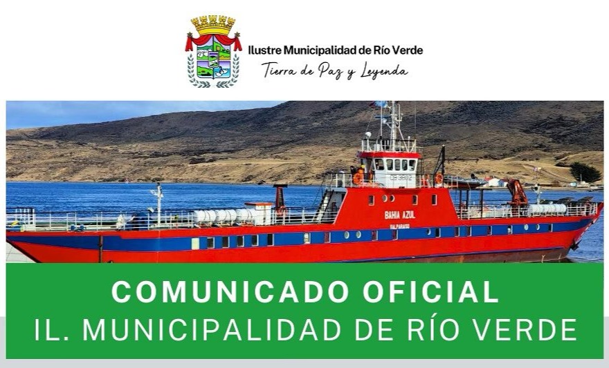 Estimada Comunidad, desde la municipalidad y en conjunto con la Gerencia de la empresa TABSA, informamos que el servicio de conectividad entre Río Verde e Isla Riesco, operado por la nave Ferry Bahía Azul, se encuentra suspendido temporalmente debido a un desperfecto técnico que requiere reparación.