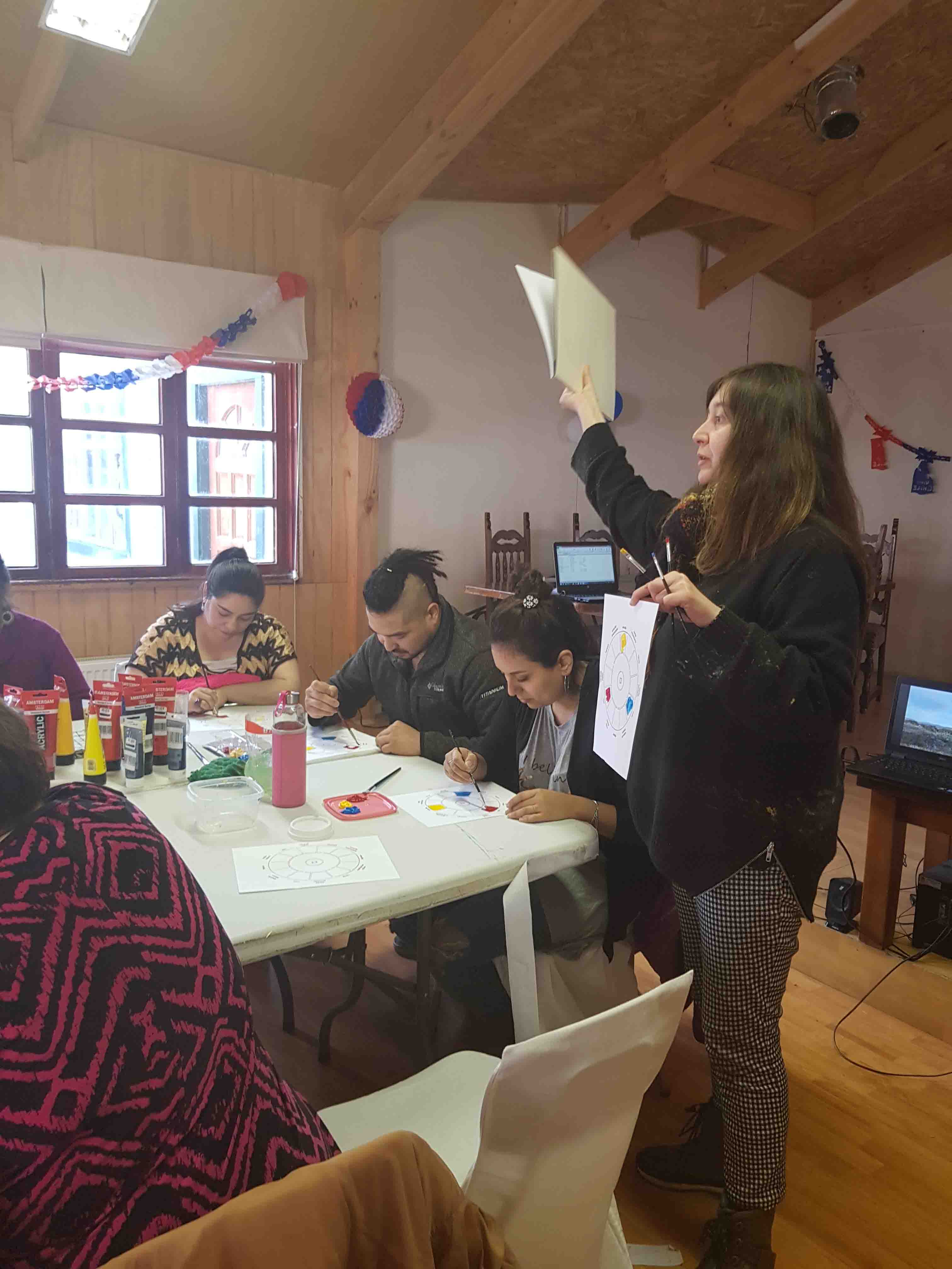 b) La enseñanza de una técnica de pintura al agua a cargo de la artista regional Andrea Araneda.